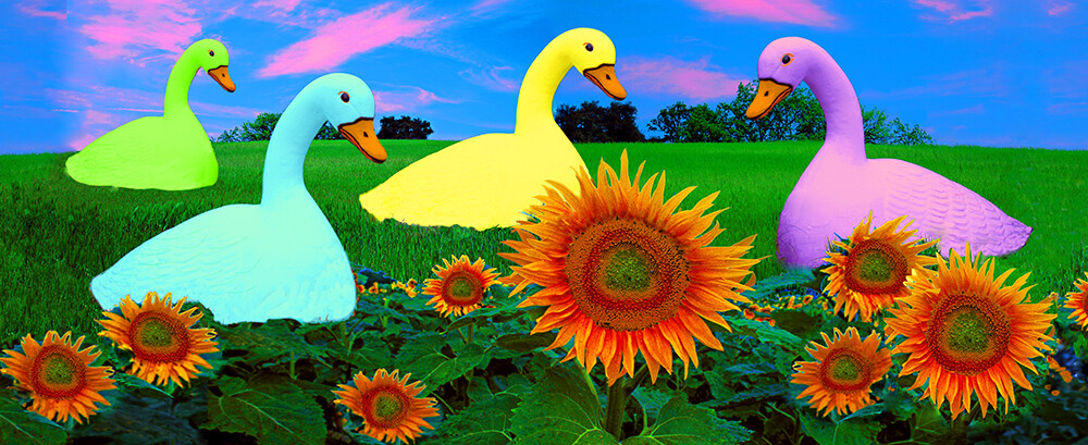 I paint, combine, and enhance them with the magic of Photoshop, creating my own colorful, idyllic world!