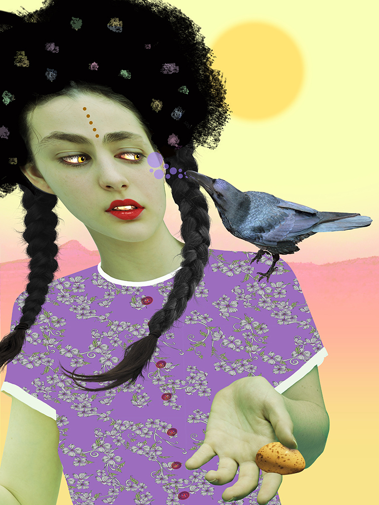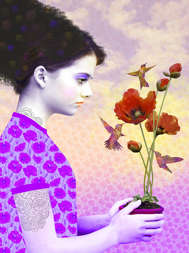 Early 20th century Austrian artist Gustav Klimt created paintings which were highly ornamental using intricate patterns, vibrant colors, and the female figure. Inspired by Klimt’s work I have created a series of photomontages along the same vein but with a more contemporary feel and with a narrative bent.